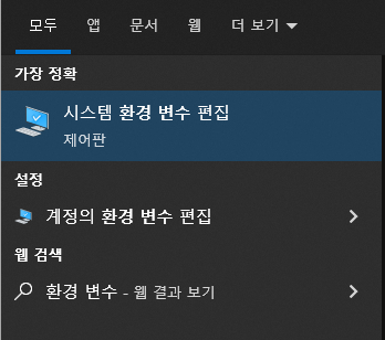 시스템 환경 변수 열기 [시스템 환경 변수 편집 > 시스템 속성 > 고급 > 환경 변수]