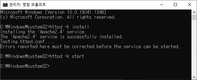 httpd -k install #서비스 설치