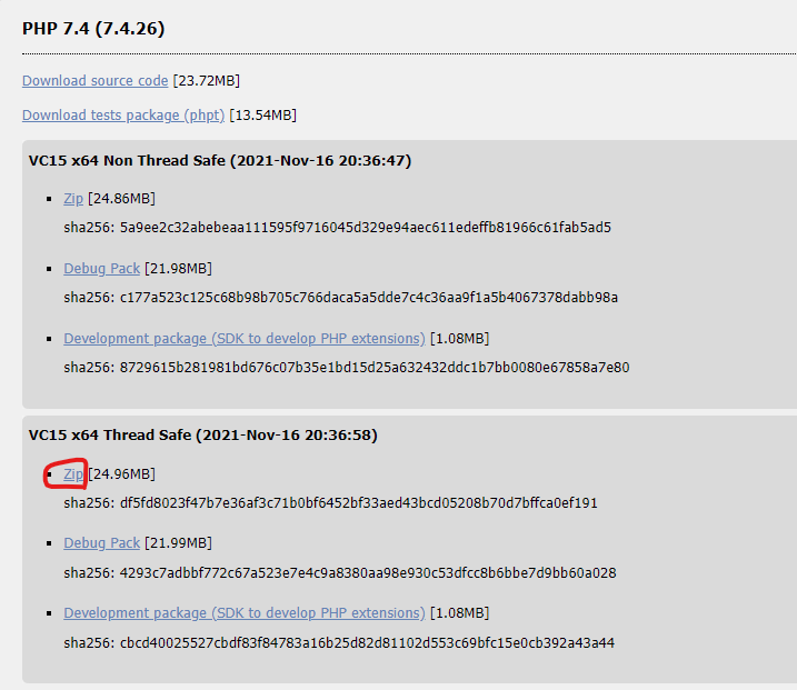 예) php-7.4.26-Win32-vc15-x64 -> php-7.4.26