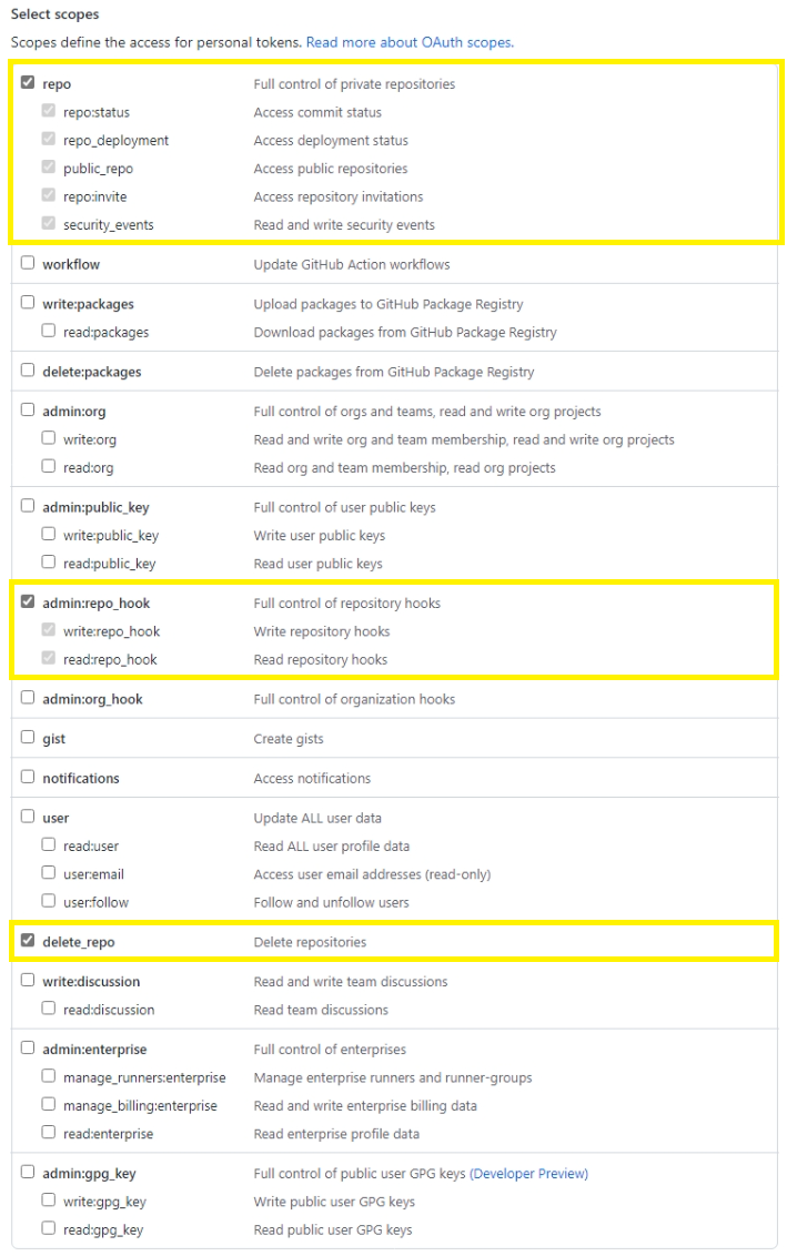 나는 개인적으로 사용할 repository 권한에 관련된 부분만 설정했다.