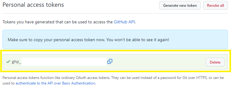 발급된 토큰은 지금 이 순간이 지나면 다시 확인할 수 없다.