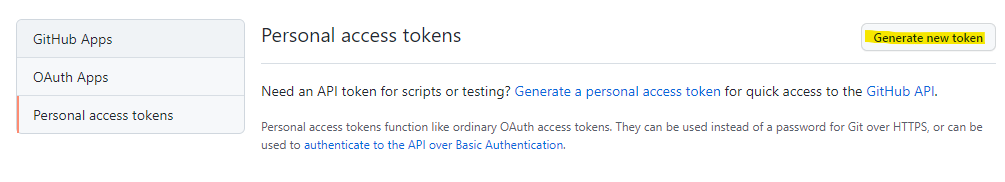 계정 > Settings > Developer Settings > Personal access tokens 메뉴로 이동