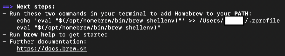 % echo 'eval "$(/opt/homebrew/bin/brew shellenv)"' >> /Users/<yourname>/.zprofile